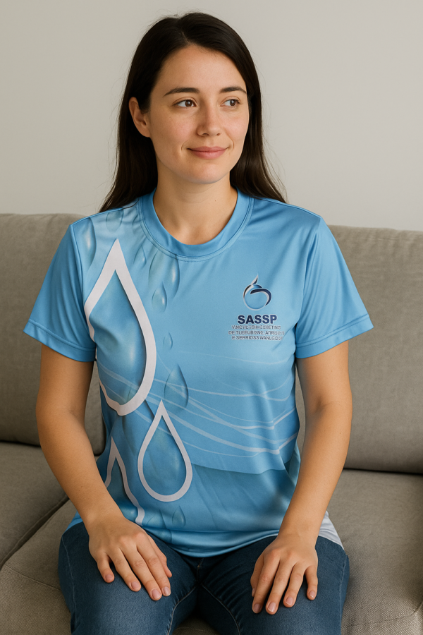 Modelo: Tradicional gola redonda ou gola V com mangas curtas. (Para outros modelos, solicite um orçamento.)